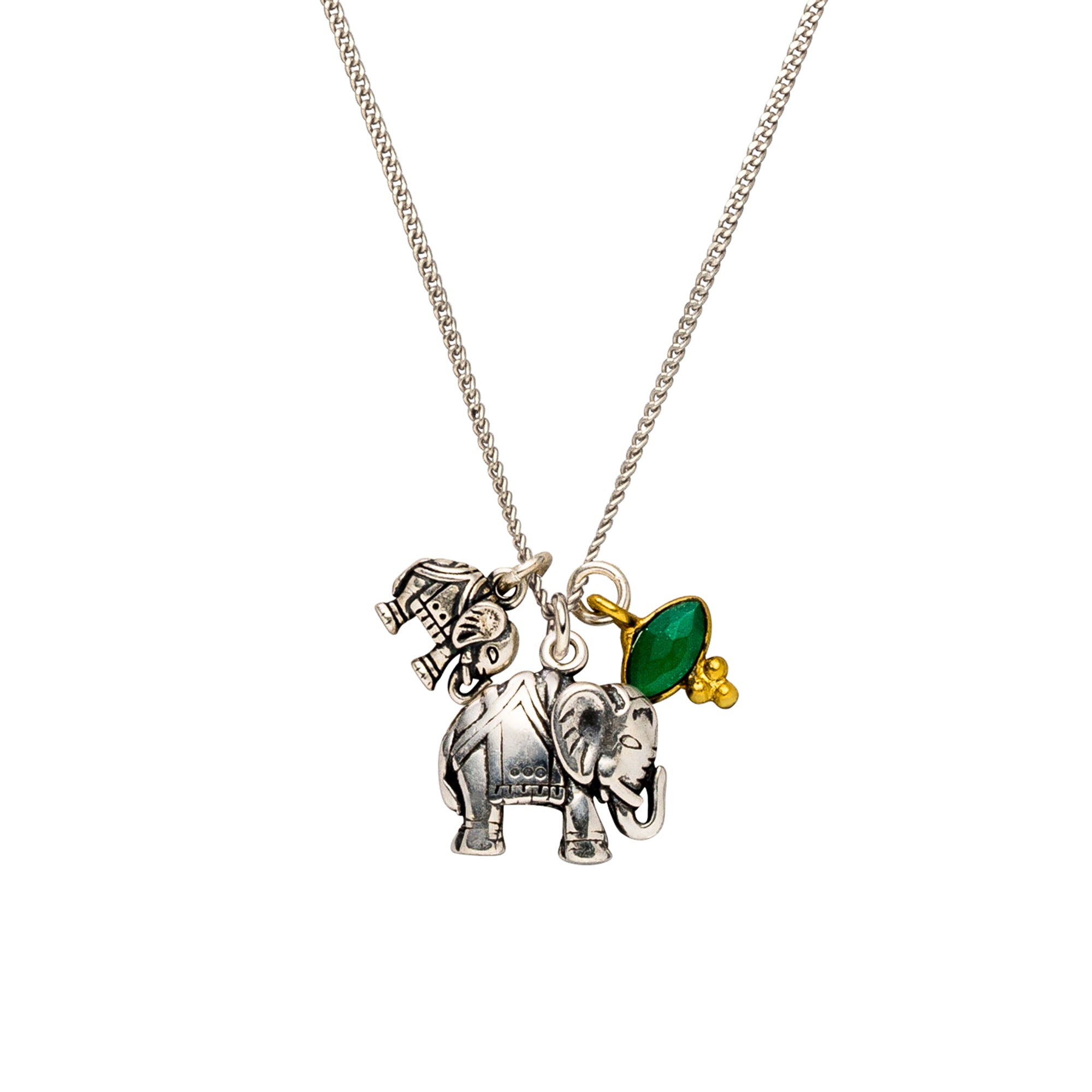 Elefanten Kette „Deep Connection“ Silber mit grünem Onyx